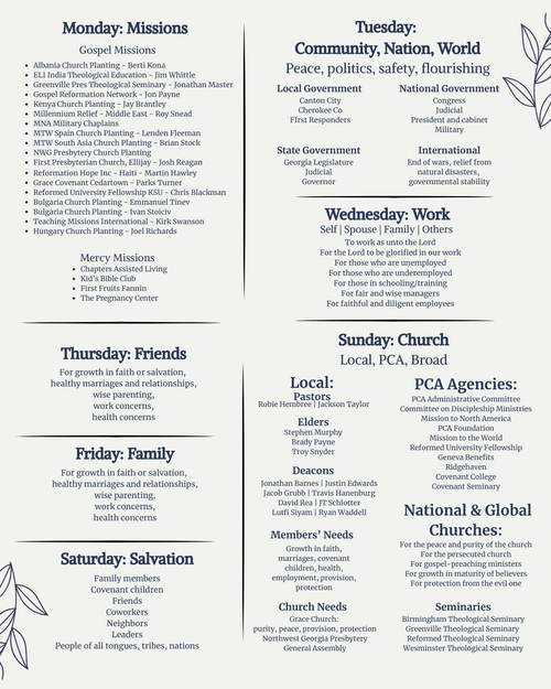 Weekly Family Prayer Guide